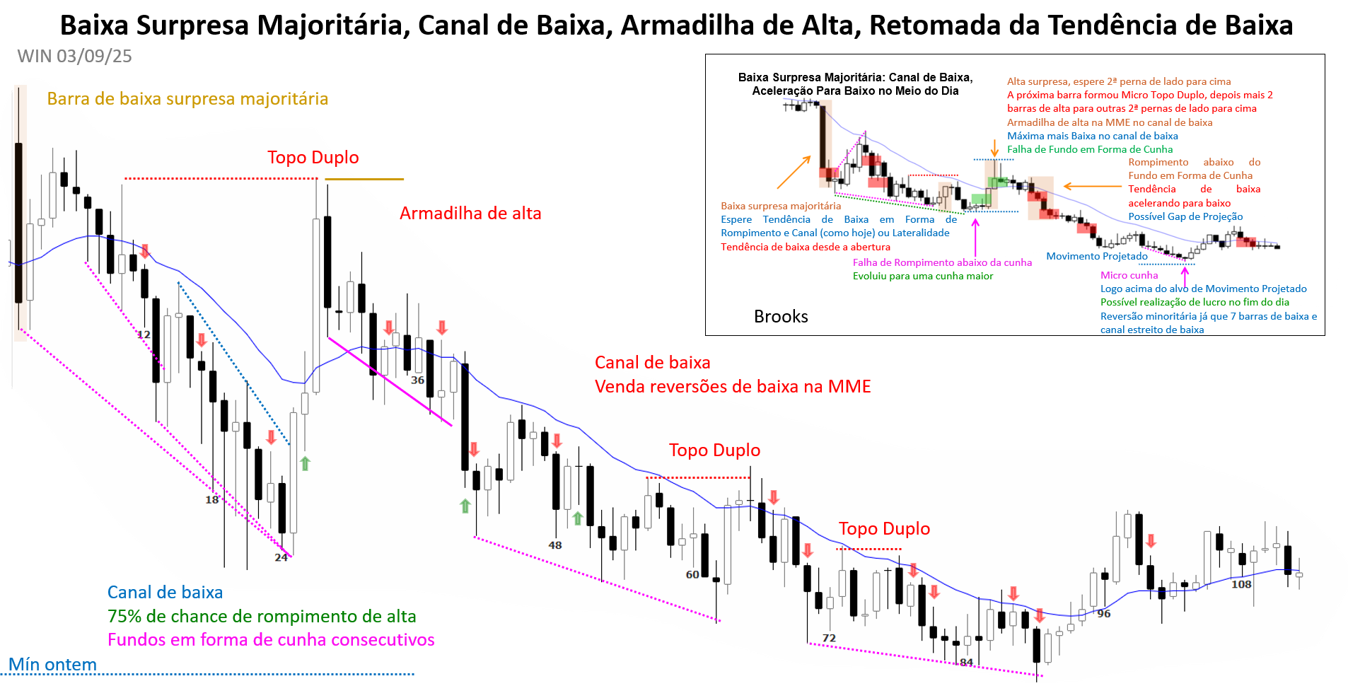 O pregão do dia 03/09/25 foi um exemplo prático de como padrões descritos por Al Brooks aparecem no gráfico do mini-índice.