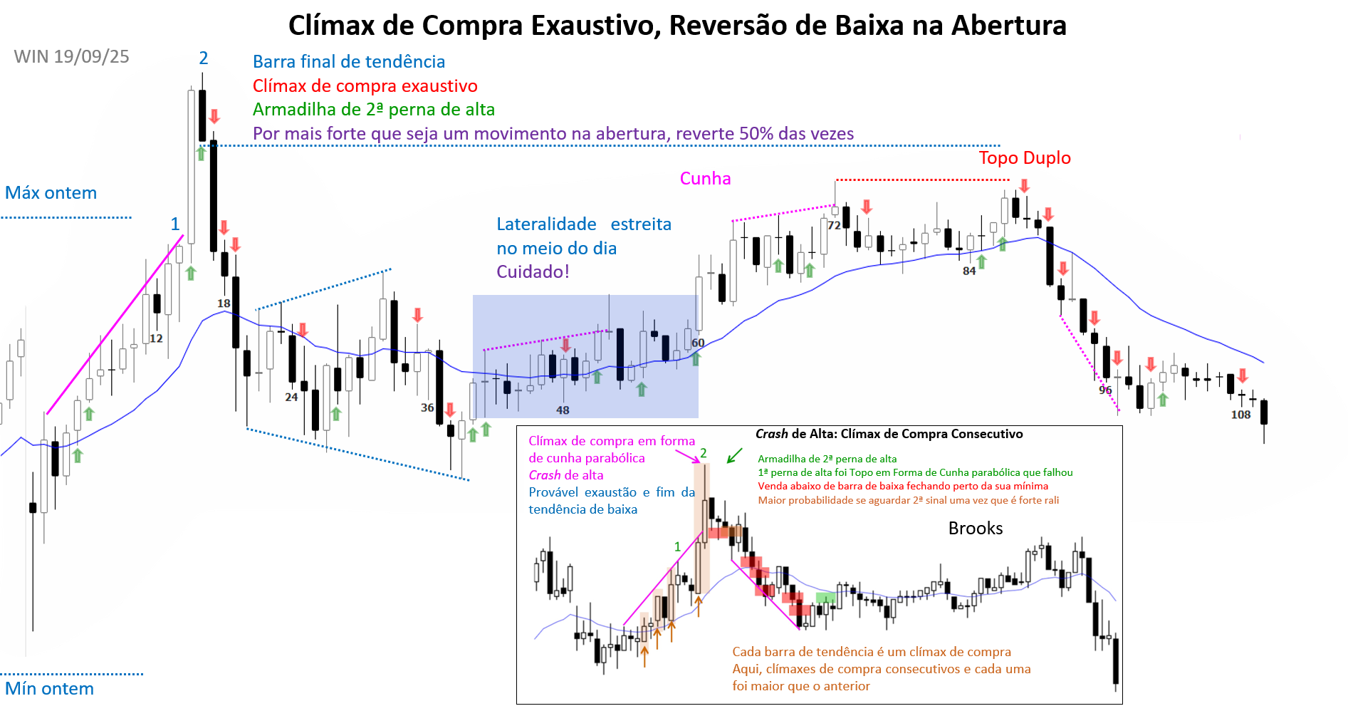 Forte clímax veio em 2ª perna, enganando os compradores a pensar que o mercado iria continuar fortemente pra cima. Compradores fortes saem, vendedores fortes vendem.