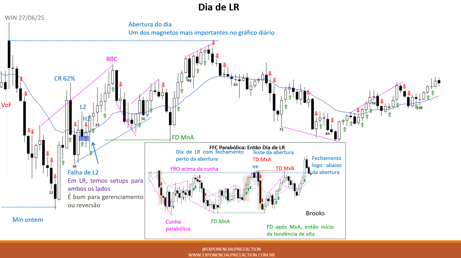 Setups de Price Action com base na metodologia do Al Brooks, WIN de Sexta-Feira, 27/06/2025