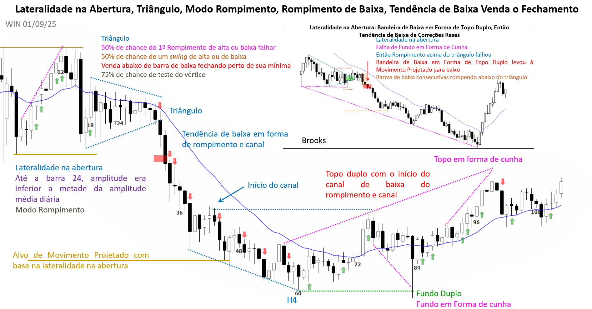 • Rompimento + canal de baixa (padrão Brooks clássico).
